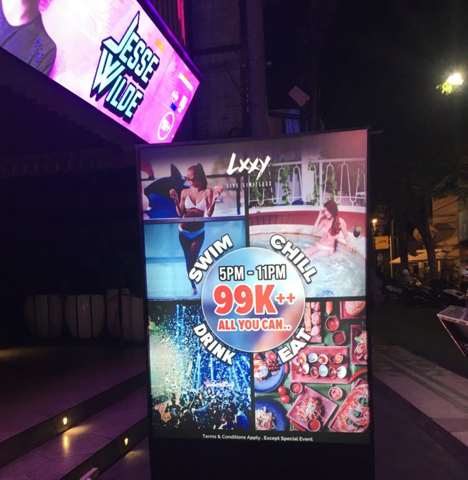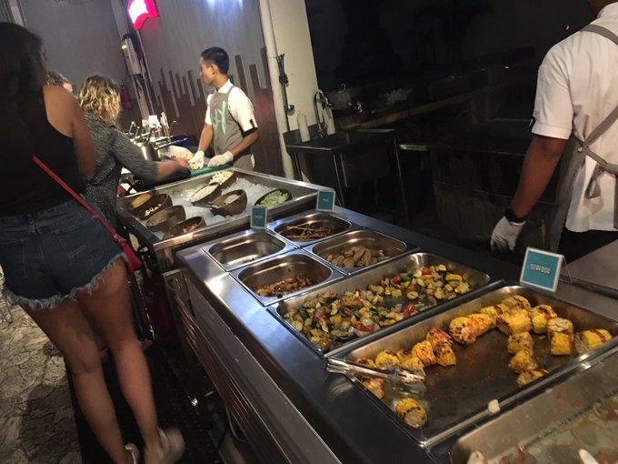 夕方から5時から夜11時まで屋上階で食べ放題&酒飲み放題&チルし放題で99,000IDR(約800円)だけど、屋上はクラブというかちょっと混み合った普通のレストラン。