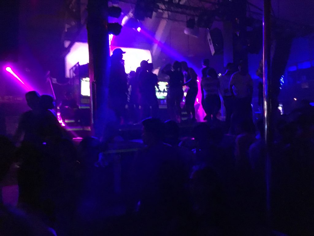 前方にDJブース、中心に誰でも踊れるお立ち台、両サイドにテーブル席があるワンフロアという、東南アジアでよく見る作り。
