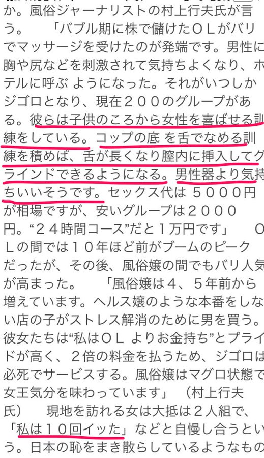 彼らバリジゴロは、生まれながらに女性を喜ばせることで生きていくことを運命付けられ、小さい頃から、コップの底に舌をつけるトレーニングをしているという。