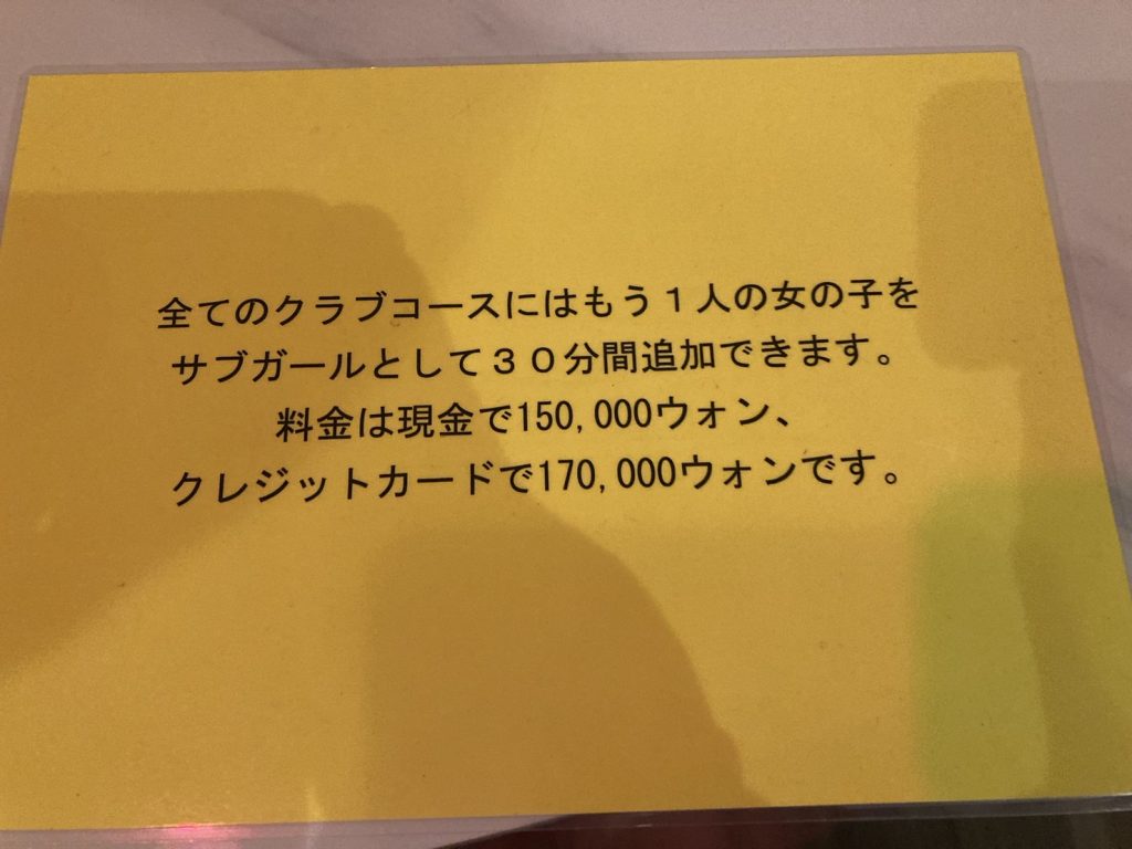 - ※オプションでサブの女の子を付ける(今回たはらがやったやつ)+15万ウォン(≒1万5000円)