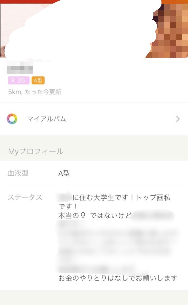 そこでマッチしたのが今回の主人公となる大学生ニューハーフのM。プロフィールを確認すると、もうエロ全開。