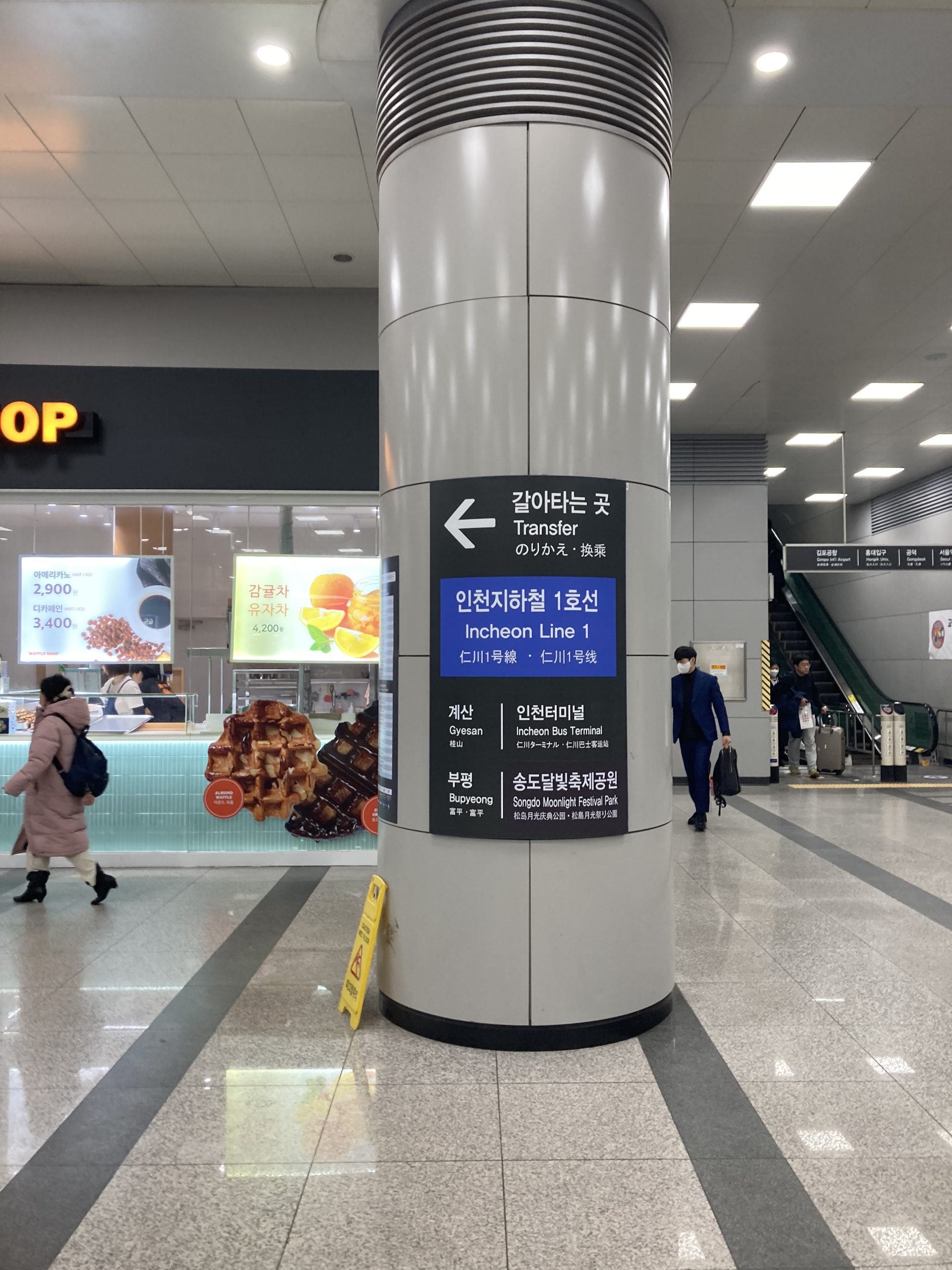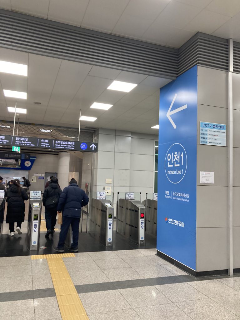 仁川空港第一ターミナルから5駅のケヤン駅(계양)で1号線に乗り換える