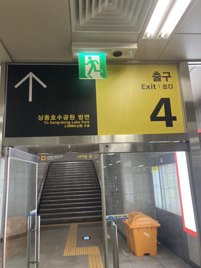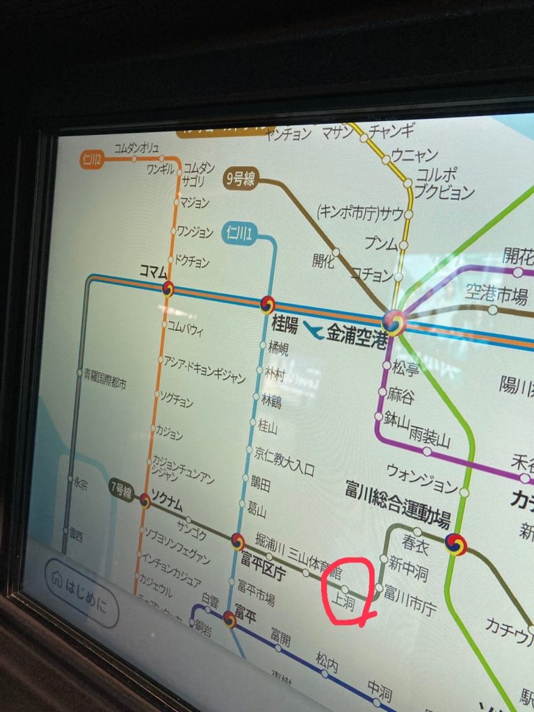 7号線に乗り換えたらもうゴールは近い。1駅だけ乗って最寄りのサンドン駅(上洞、상동)で降りる。