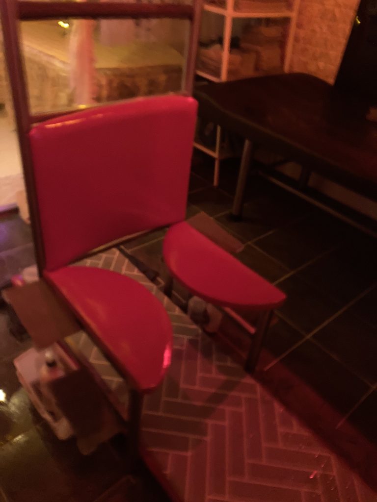 ただ、女の子の見た目云々よりまず目についたのは、奥のマットエリアのこの謎のイスw