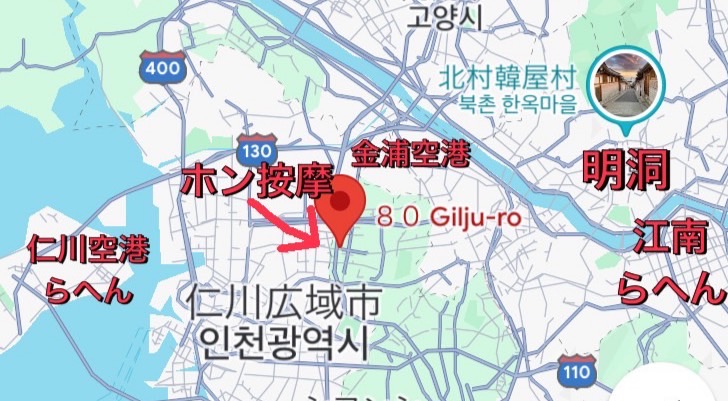 - ソウル中心の江南エリアではなく、仁川&金浦空港から近い按摩店を知りたい