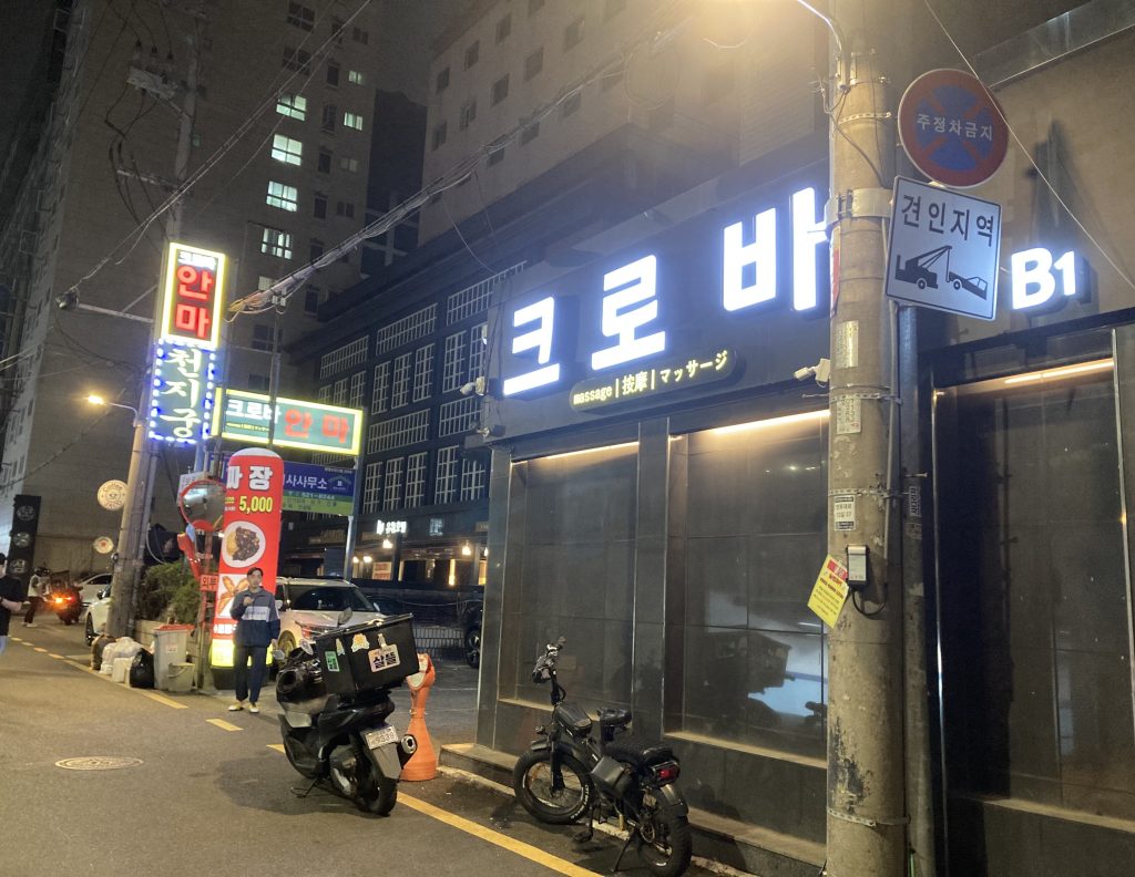 ※ただ、韓国語読める人にとってはもっとややこしいけど、表の看板は韓国語表記のみで「크로버 안마(クローバー按摩)」となっていてこれは特に変わってない。韓国人向けの名前が「クローバー按摩」で外国人向けは「IDLE CLUB」