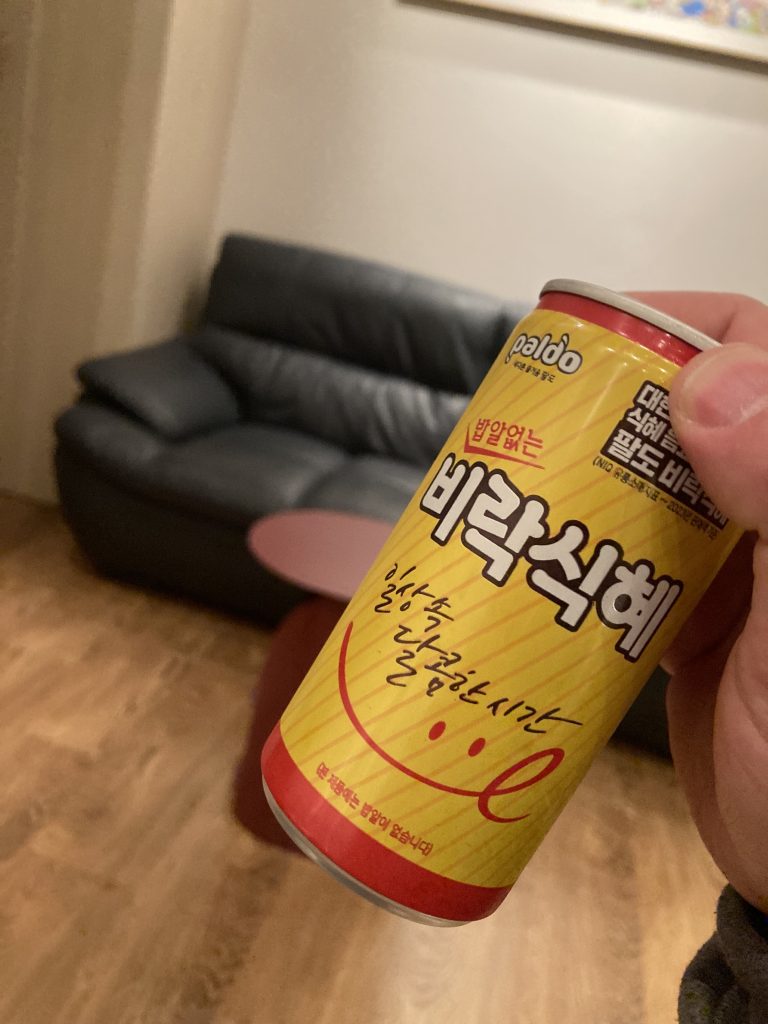 「何か飲むか?」とスタッフに聞かれ、羅列された中で一番惹かれた「コリアンティー」を選択して出てきたのがなんとシッケ。韓国按摩ではよく目にするくっっそくそ甘い飲み物w