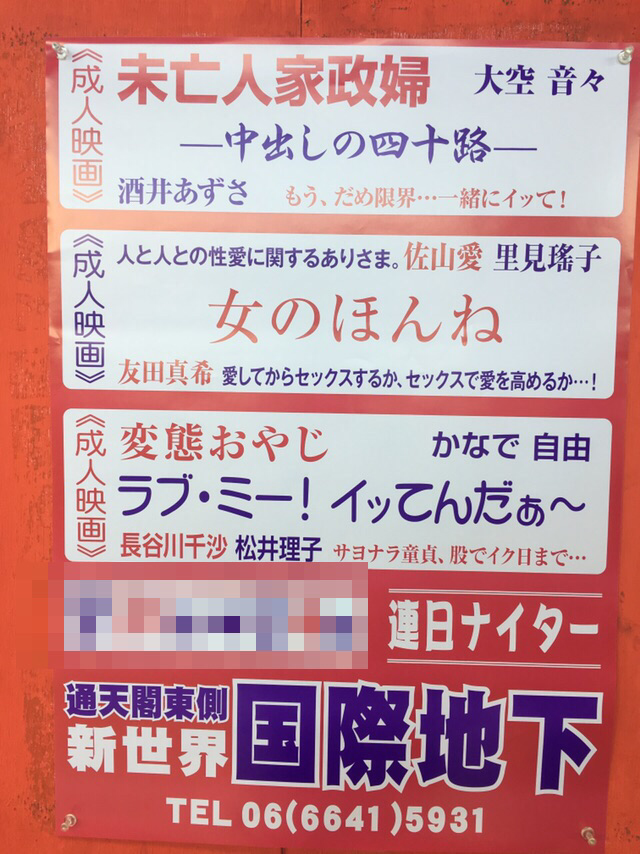 新世界国際劇場の入り口から階段を下りきり、地下のポルノ映画館の扉が見えてくる。