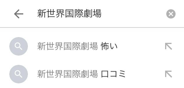 さらに調べようとすると「新世界国際劇場 怖い」「新世界国際劇場 地下 治安」などの検索サジェストが並び、
