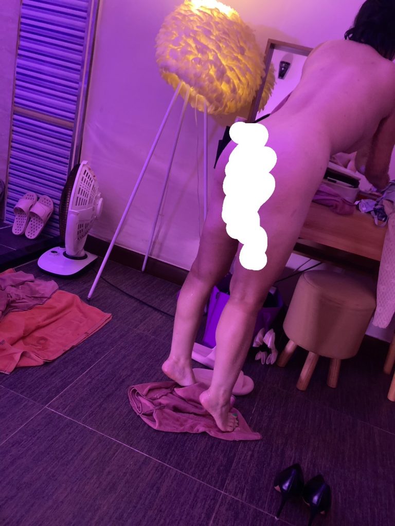 フル勃起のまま、マットに手を付くように言われ、立ちバックで挿入。椅子プレイ→マットを使って挿入する体験なんて、NINEでしかできないんじゃないん?
