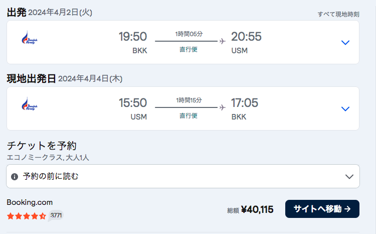→この行き方は、楽で移動時間もやや短めで最も一般的だが、バンコク⇆サムイ島の飛行機代が常時往復4万円近くとクソ高い。