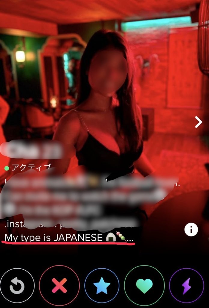 「勤勉」で「真面目」な日本人女性のように、写真をある程度見て、きちんと右か左か悩むのとはまた別のTinder感覚だろう。