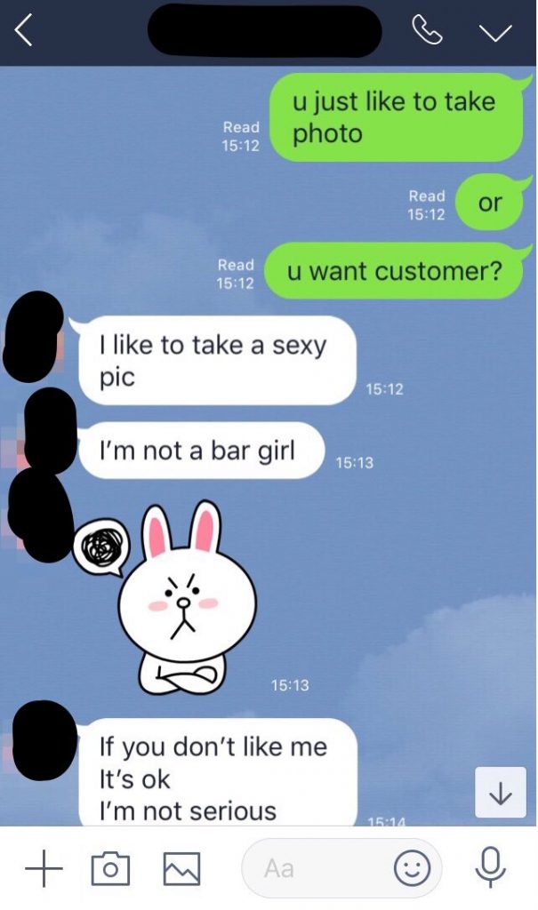 「私はただセクシーな写真を撮るのが好きなだけ!Bar Girl(売春婦、プロ)と一緒にしないでくれ!」とご立腹。